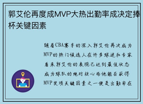 文章摘要:2025年辽宁篮球队的总决赛再次吸引了全体篮球迷的目光。赛场上,年轻小将张镇麟的爆发性表现为辽宁队注入了强大的动力,并帮助球队在关键时刻取得了巨大的突破,重燃了球队的冠军梦。张镇麟不仅在技术层面上展现了非凡的天赋,而且在比赛的关键时刻展现了极强的心理素质与领导力,成为球队的重要支柱。本文将从四个方面分析张镇麟在辽宁总决赛中的出色表现:一是张镇麟的个人突破与得分能力;二是他在防守端的贡献;...